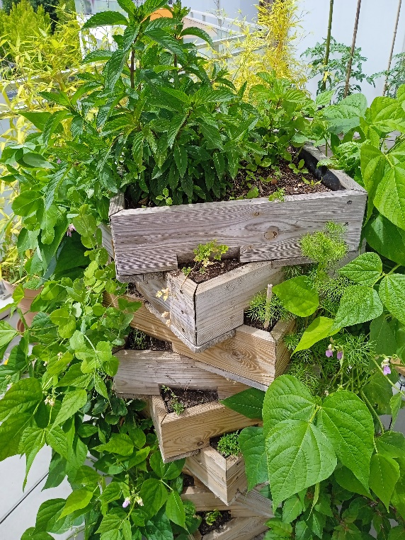 - 2 tours potagères : Montée sur roulettes, cette structure verticale en bois permet de cultiver aromatiques, petits légumes et fleurs avec une prise au sol très réduite. Idéale pour petit jardin ou terrasse.
