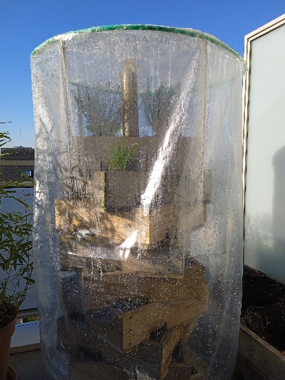 - 1 Zone de culture verticale : réalisation de structures en fer, en géotextile et en bois afin de pouvoir cultiver sur structure verticale (mur mitoyen, garage…).