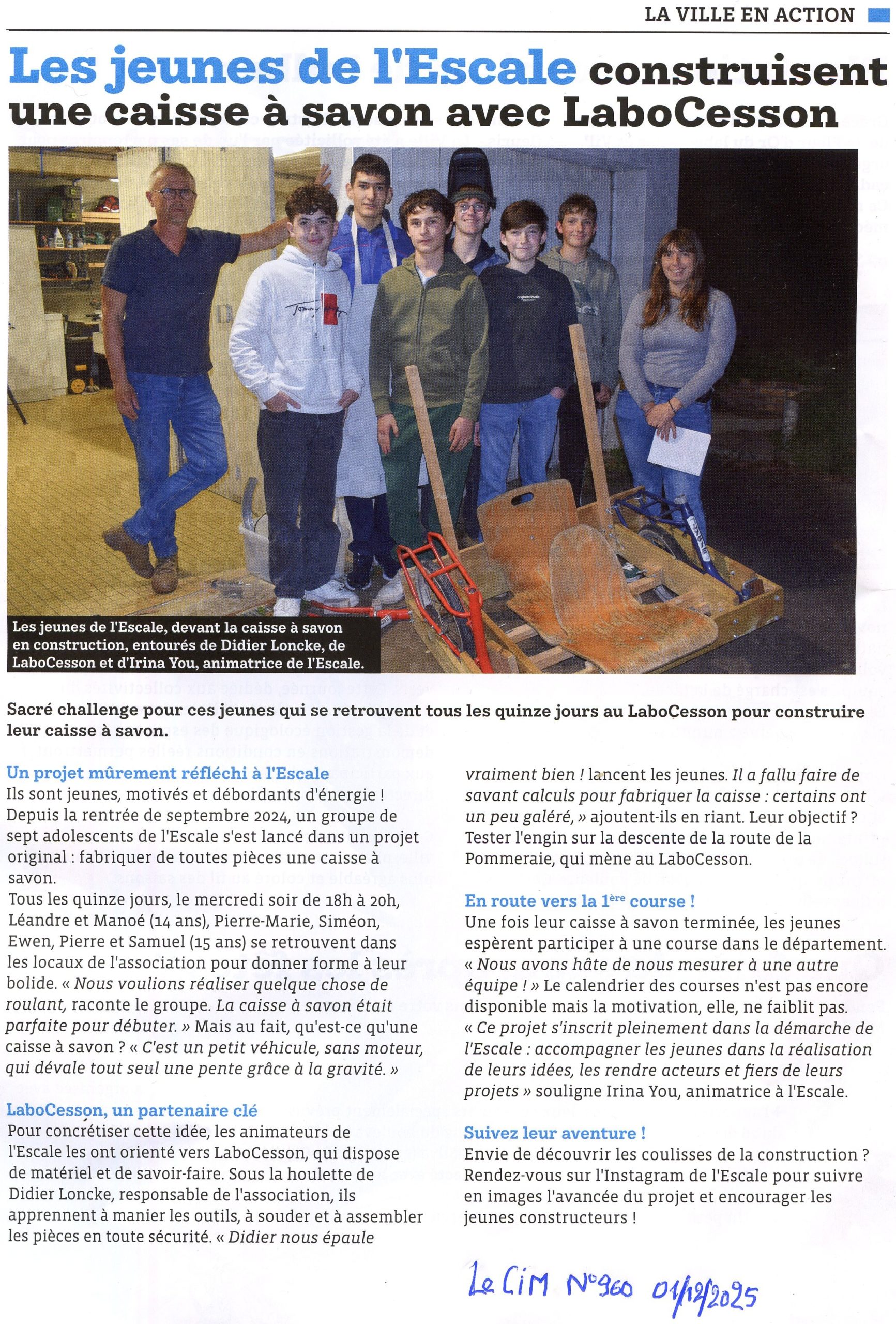 La caisse à savon de L’Escale. Le projet des jeunes de l’Escale bénéficie de la collaboration avec l’Atelier construction du Labo Cesson.